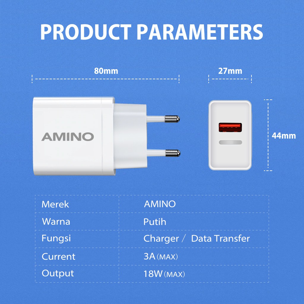 Dengan teknologi fast charging, AMINO 3A 18W memastikan bahwa perangkat Anda terisi dengan cepat dan efisien. Anda tidak perlu menunggu lama untuk mendapatkan daya penuh pada smartphone Anda.