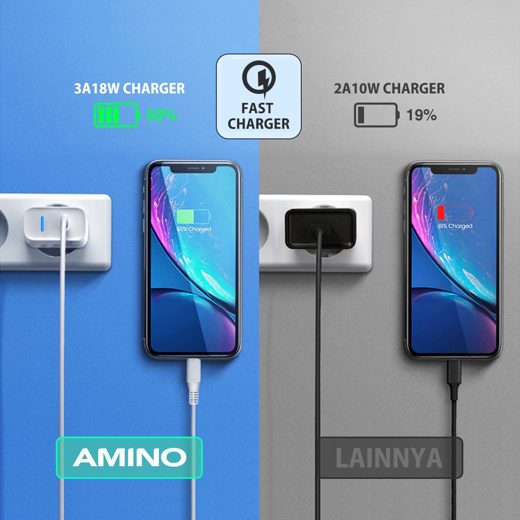 AMINO 3A 18W Fullset Adaptor Fast Charger adalah pilihan tepat untuk semua pengguna smartphone yang menginginkan pengisian daya yang cepat dan efisien. Dengan berbagai keunggulan dan pilihan kabel, Anda dapat menyesuaikan produk ini dengan kebutuhan perangkat Anda. Jangan ragu untuk mendapatkan produk ini dan nikmati kemudahan dalam pengisian daya!