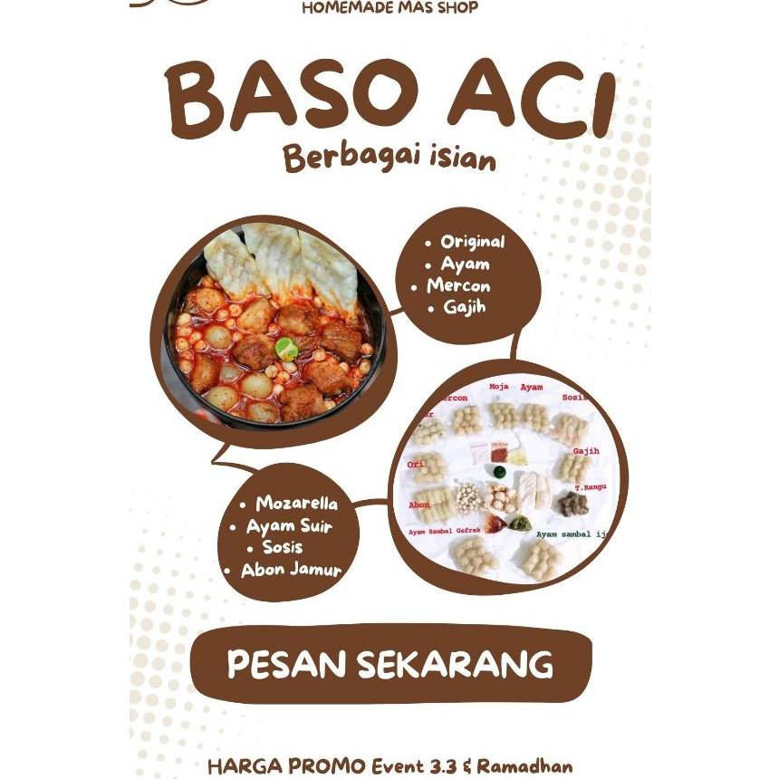 - Baso Aci Mercon: Untuk Anda yang menyukai sensasi pedas, varian ini berisi 12 baso aci isi daging ayam pedas.