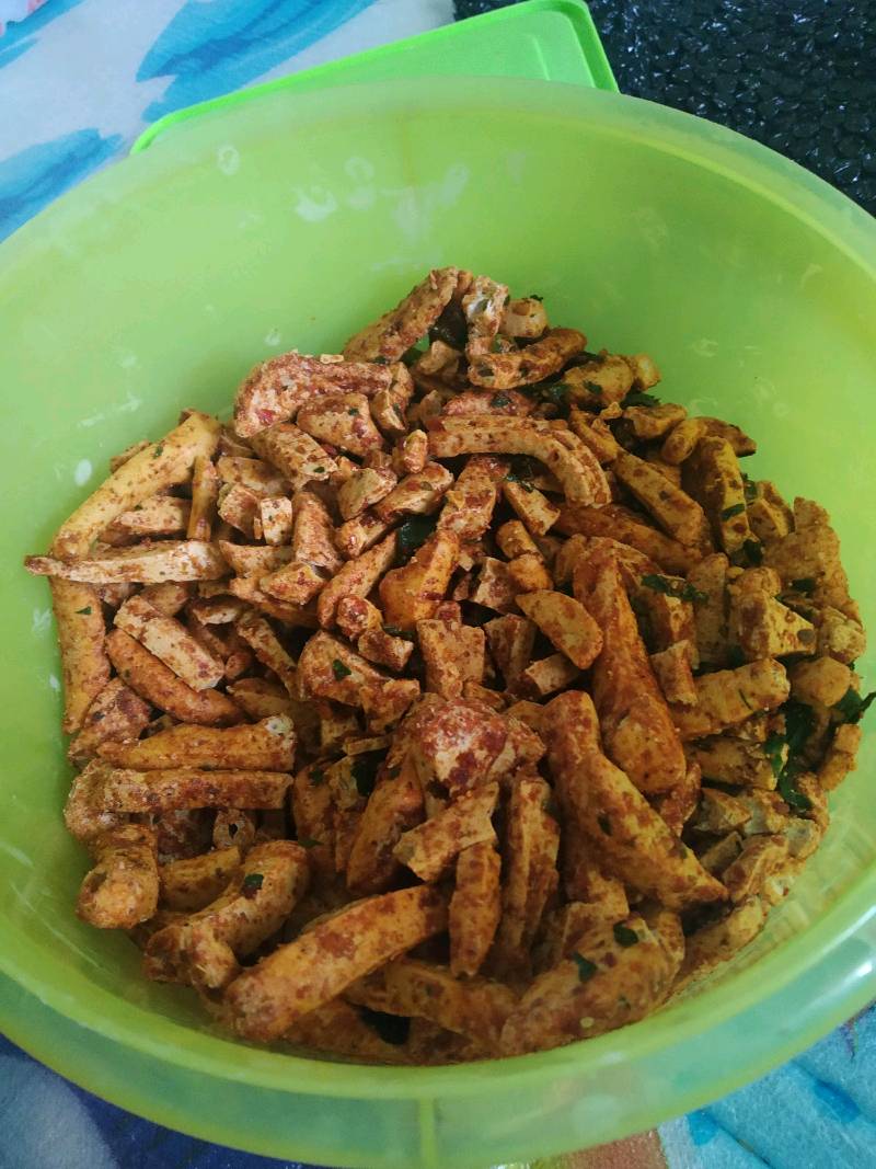 Kualitas:good! Rasa:delicious setelah beli tidak ada rasa penyesalan sama sekali karna pas nyampe sesuai ekspektasi, rasanya enak, teksturnya renyah dan tidak keras, bumbu melimpah, daun jeruknya kerasa, dan potongannya cukup besar, love it!!!