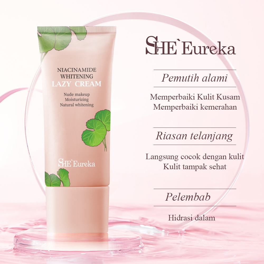 SHE Eureka Niacinamide Lazy Cream adalah sebuah inovasi dalam dunia perawatan kecantikan. Dengan ukuran 35g, krim ini tidak hanya berfungsi sebagai pemutih instan, tetapi juga mengandung bahan-bahan alami yang bermanfaat bagi kesehatan kulit Anda. Berikut adalah beberapa fitur unggulan dari produk ini: