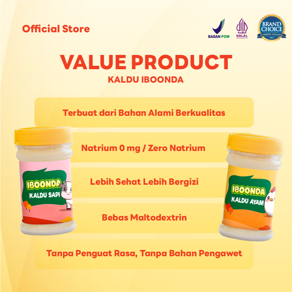 Dalam dunia memasak, terutama ketika kita mempersiapkan makanan untuk keluarga dan si kecil, rasa adalah hal yang sangat penting. Iboonda Kaldu hadir sebagai solusi sempurna untuk menambah cita rasa alami dalam setiap hidangan. Dengan kombinasi kaldu ayam, ikan, dan sayuran, bumbu ini tidak hanya membuat masakan lebih nikmat tetapi juga sehat dan bergizi. Terlebih lagi, Iboonda Kaldu adalah pilihan yang tepat untuk makanan pendamping ASI (MPASI) karena diformulasikan tanpa MSG dan pengawet.