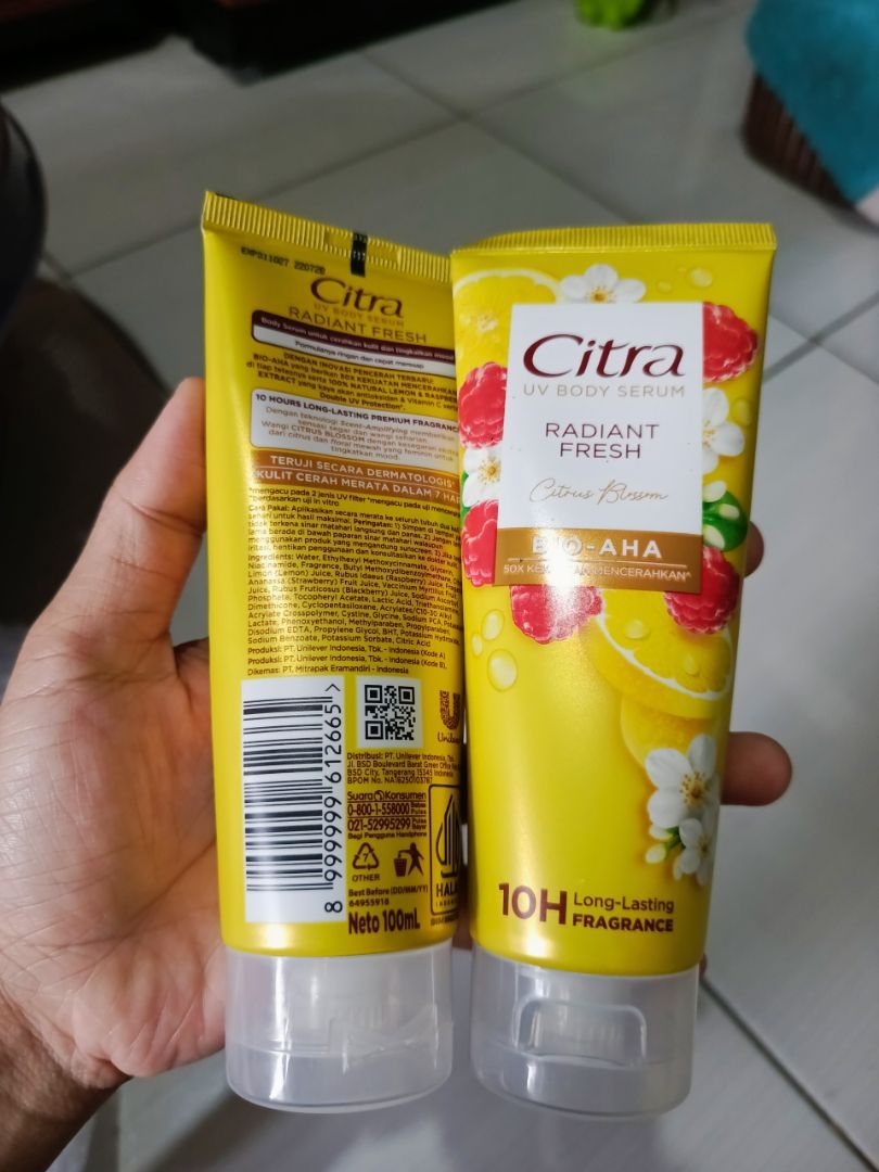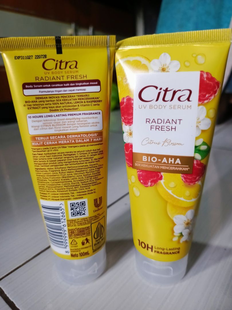Jika Anda mencari produk yang dapat membantu Anda mendapatkan kulit glowing, terhidrasi, dan terlindungi dari sinar UV, CITRA Body Serum Radiant Fresh Bio-AHA adalah pilihan yang tepat. Dengan kombinasi bahan alami yang efektif dan teknologi modern, serum ini memberikan hasil yang memuaskan dalam waktu singkat. Jangan tunggu lagi, dapatkan kulit impian Anda dengan CITRA Body Serum sekarang juga!