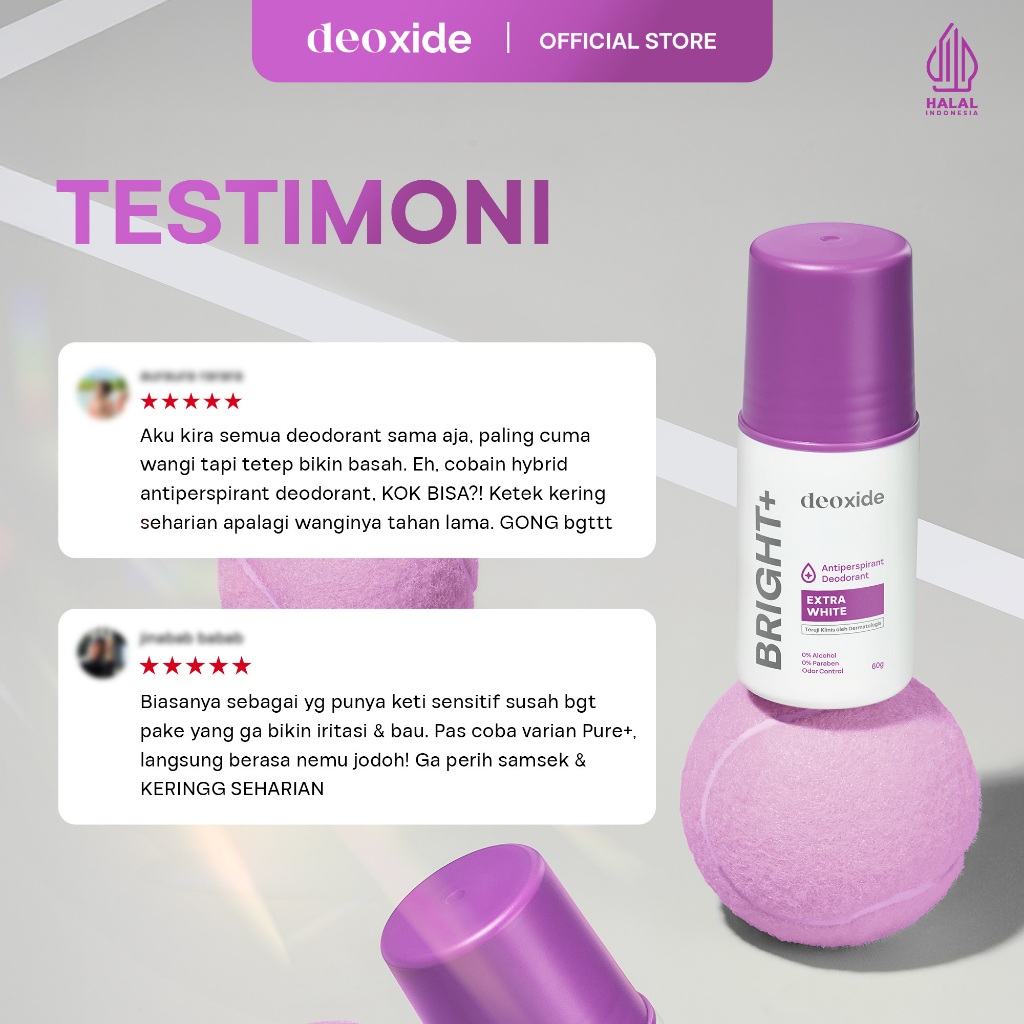 Dengan Deoxide, Anda tidak perlu khawatir lagi tentang rasa tidak nyaman akibat keringat atau bau. Anda dapat menjalani aktivitas sehari-hari dengan percaya diri, baik itu di kantor, saat berolahraga, atau dalam acara sosial. Ketiak yang cerah dan harum adalah impian setiap wanita, dan Deoxide adalah langkah awal untuk mewujudkannya.