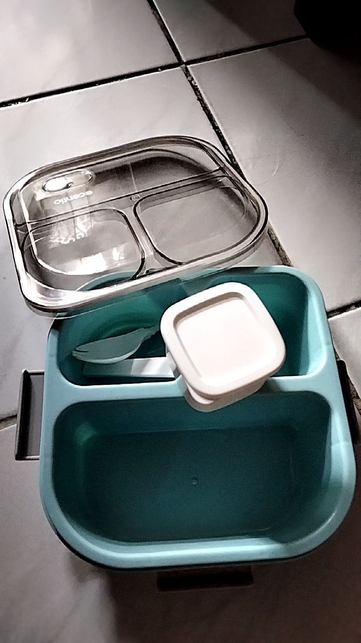 Tampilan:bagus estetik Kualitas:bahan tebal Performa:kokoh Baru pertama coba Ecentio, ternyata kualitas nya bagus bahan tebal kokoh tidak bau plastik, jadi aman buat bekal anak2. Pengiriman juga cepat, dapat harga murah saat Shopee live 18k😍😍😍. Tengkiu seller dan Shopee ❤
