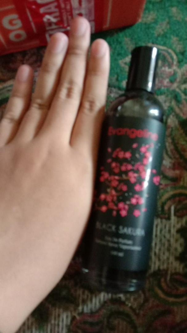 Kemasan:elegan botol kaca Ketahanan:belum tau belum coba Wangi:enak seger Baru pertama nyoba black sakura dan please ini enak banget seger cewe cowo bisa pake sih ini mah enaaaaakkk , kemaren nyoba yg red sakura wangi vanilla manis gitu kurang cocok dan yg black sakura ini lebih cocok di aku sukaaaaa bangeeettt❤️❤️❤️ ada gift nya jugaa lagi uuh makin cinta sma EVANGELINE.