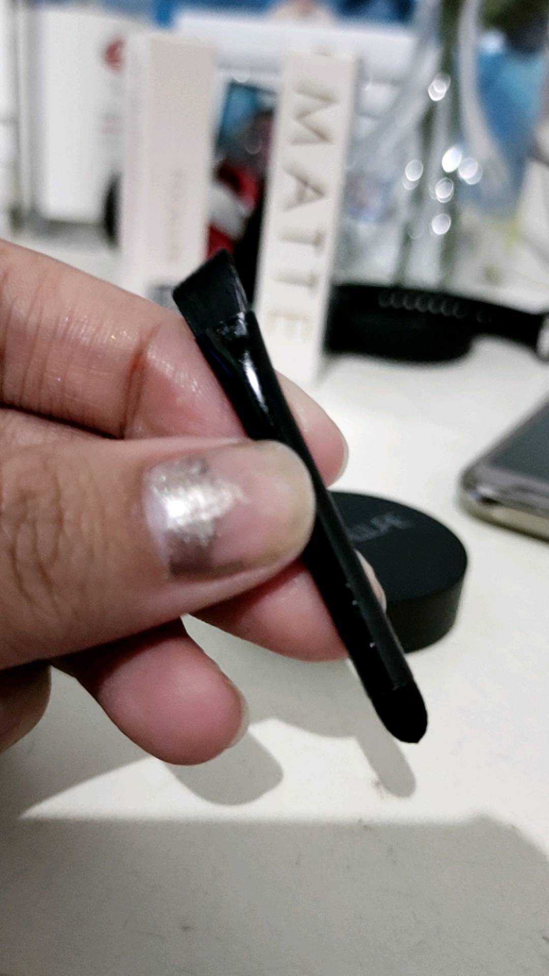 Ketahanan:lumayan Warna:coklat tua Kenyamanan aplikator:nyaman bgt tp rada bengkok gpp sukak dehh, dulu beli warna chocolate malah merah bgt, trnyata ash brown ini beneran coklat tua trus pigmented bgt??? kek satu kali oles aja udh tebel wow me likeyyyy trus bungkusnya jg bagus aja gitu🥰