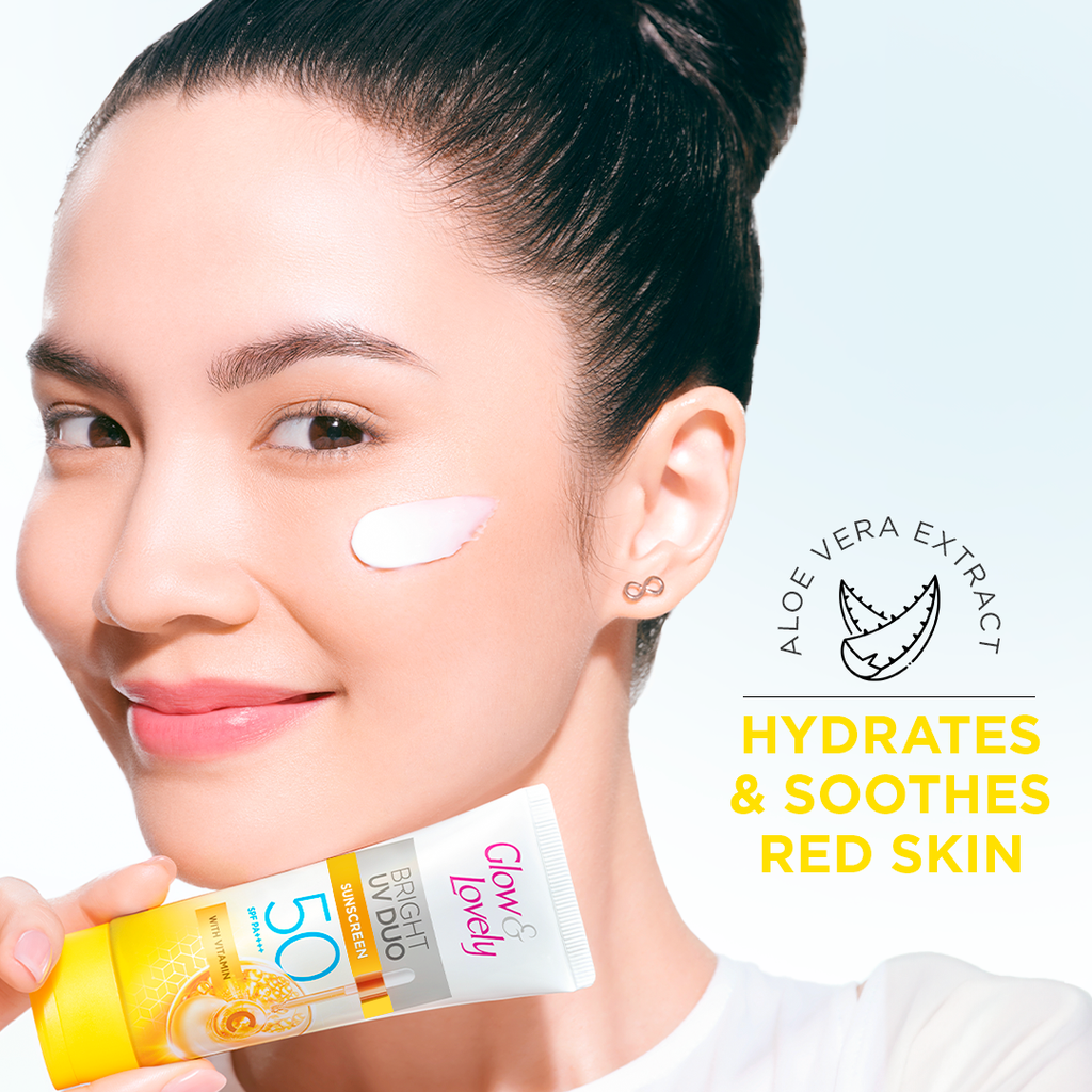 Glow & Lovely Sunscreen Wajah UV Duo dirancang untuk memberikan manfaat ganda: perlindungan dan kecerahan. Dengan teknologi Photostable Sunscreen Booster, produk ini memberikan perlindungan hingga 98% dari sinar UVB. Selain itu, penggunaan rutin dapat membantu mengurangi dark spot akibat paparan sinar matahari dalam waktu singkat, bahkan dalam 7 hari.