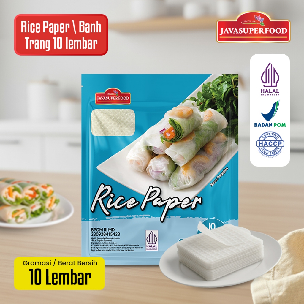 Rice paper dari Javasuperfood adalah pilihan tepat bagi Anda yang mencari bahan makanan berkualitas tinggi dan sehat. Dengan beragam keunggulan dan kemudahan dalam penyajian, Anda bisa membuat berbagai hidangan menarik yang tidak hanya lezat tetapi juga baik untuk kesehatan. Cobalah Rice Paper kami dan buktikan sendiri betapa sempurnanya untuk berbagai resep, dari spring roll sayuran yang segar hingga hidangan penutup manis yang menggugah selera.