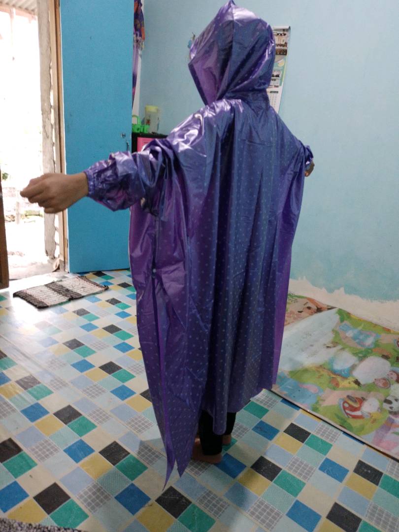 - Dengan model ponco, Anda bisa bergerak lebih leluasa dibandingkan jas hujan biasa yang sempit.