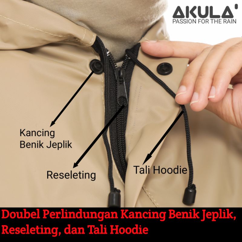 Anda tidak perlu khawatir tentang kualitas jas hujan ini. AKULA menyediakan garansi 100% original, serta kebijakan tukar barang jika Anda menerima produk yang cacat atau rusak. Jangan ragu untuk membeli dan nikmati pengalaman berbelanja yang aman dan nyaman.