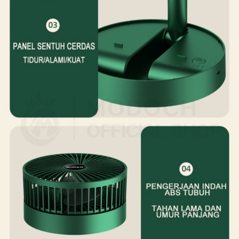 [KYLO] Kipas Angin Lipat Portable memiliki diameter mesin 164 mm dan berat hanya 600g, menjadikannya sangat ringan dan mudah dibawa ke mana saja. Apakah Anda sedang di rumah, di kantor, atau saat bepergian, kipas ini dapat dilipat dan disimpan dengan mudah. Dengan berbagai pilihan warna, termasuk hijau yang segar, Anda tidak hanya mendapatkan alat pendingin tetapi juga aksesori yang stylish.