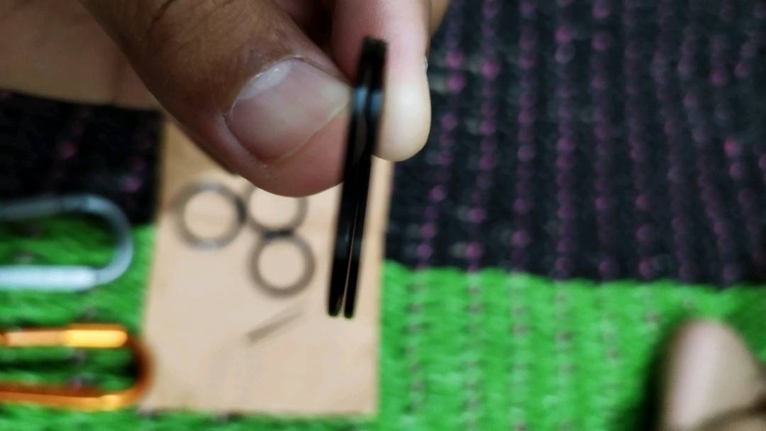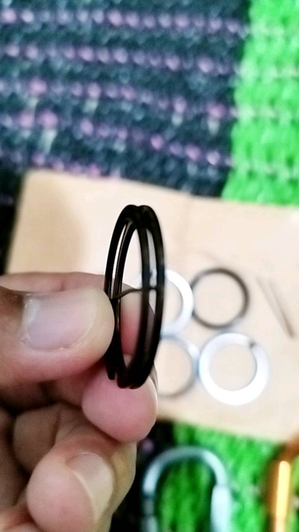 Carabinernya ukuran tanggung, lebih gede drpd carabiner yg sblumnya aku pakai utk kunci. Ring hitam karena ada ganjalan batangnya, jd terkesan renggang tdk rapat