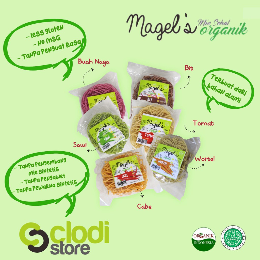 Apakah Anda mencari mie instan yang tidak hanya enak, tetapi juga sehat? Magels Mie Magels Mie Organik Goreng Sayur adalah solusinya! Dengan kombinasi tepung terigu, ketela, dan 20% sayuran segar, mie ini tidak hanya memanjakan lidah, tetapi juga memberikan nutrisi yang dibutuhkan tubuh. Dapatkan semua manfaat sayur dalam satu porsi mie yang praktis dan lezat!