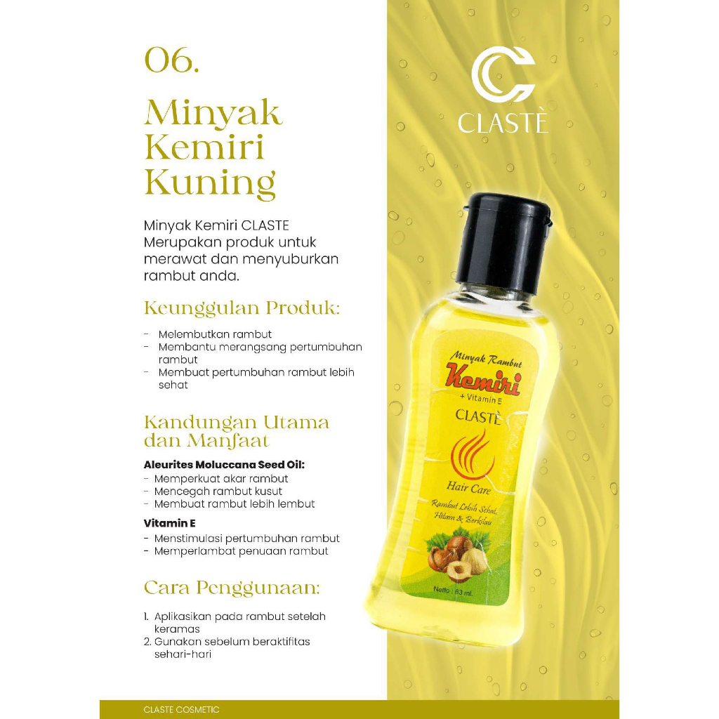 - Keaslian Produk: Minyak Kemiri Original Claste merupakan produk asli yang terbuat dari bahan-bahan alami berkualitas tinggi.