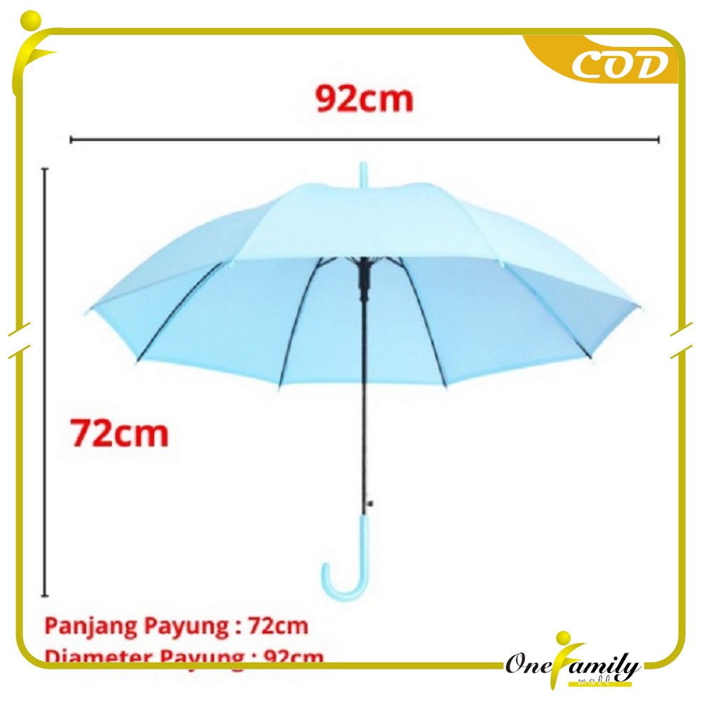 Pastikan untuk membuka payung dengan hati-hati dan mengeringkannya setelah digunakan. Hindari penggunaan di cuaca ekstrem untuk menjaga keawetan produk.