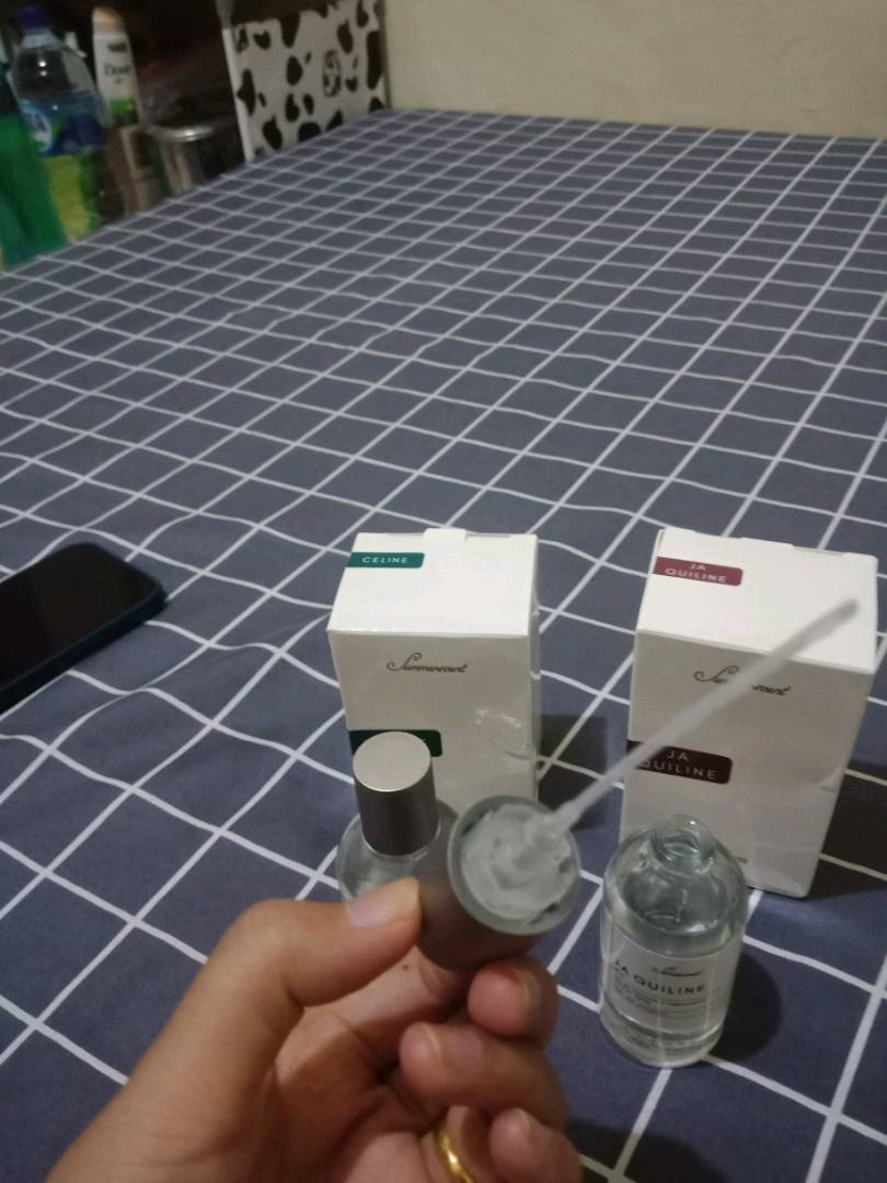 Wangi:enak bgt soft Ketahanan:blm dicoba smg tahan lama Kemasan:kemasan parfum pd biasanya waktu aku semprot kaget bgt baunya seenak itu😭😭 baunya aku banget deh pokonya!! g nyesel beli krn kena racun di tiktok. tapi aku msh penasaran sm celine😭 next kl ada rejeki mau beli yg celine.