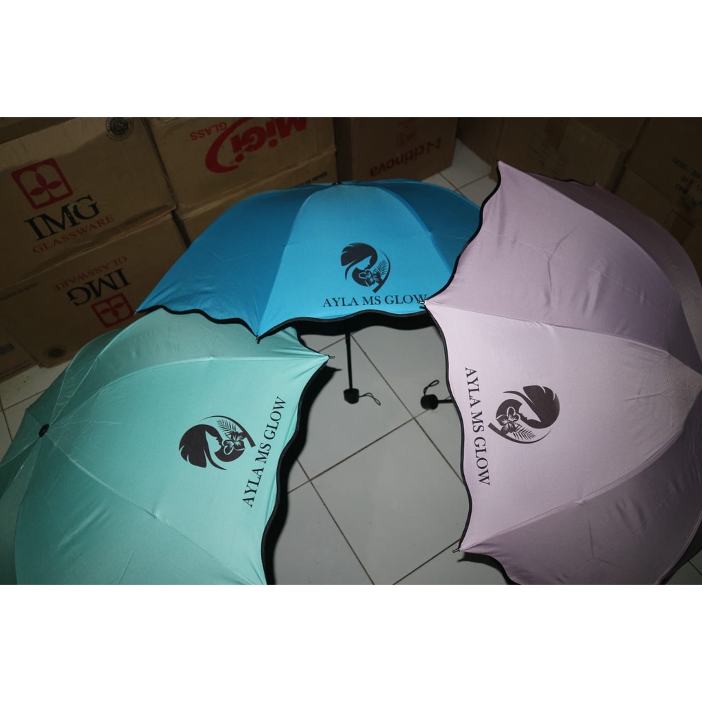- Untuk cetak full color pada payung warna gelap, dikenakan biaya tambahan Rp3.000 per sisi per pcs.