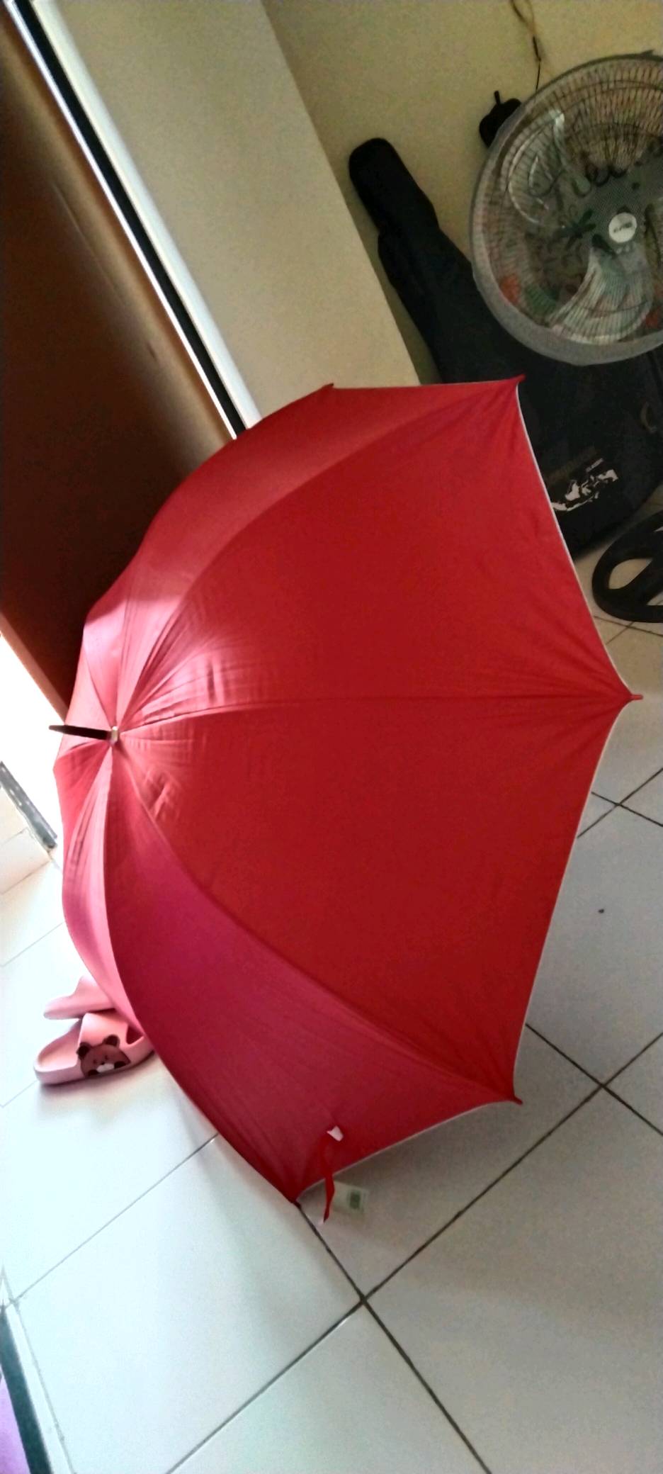 Performa:ok Kualitas:ok Cocok Untuk:memayungi wajah ketika menangis Bagus, beneran jumbo, besar muat untuk 3 orang, packingan rapih pakai bubble wrap dan di pakai kan box kardus, thanks seller