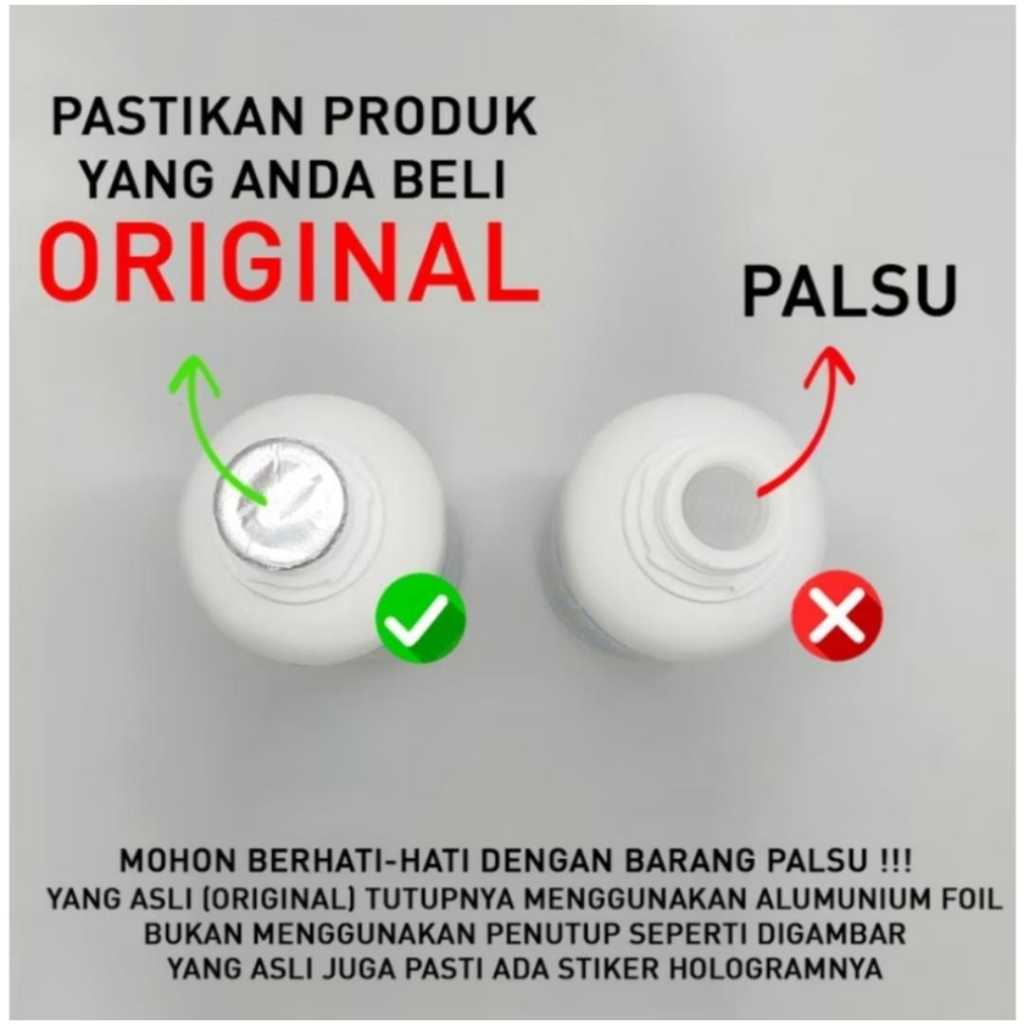 - Hologram Original: Pastikan produk yang Anda beli memiliki hologram original berbentuk sarang tawon sebagai tanda keaslian.