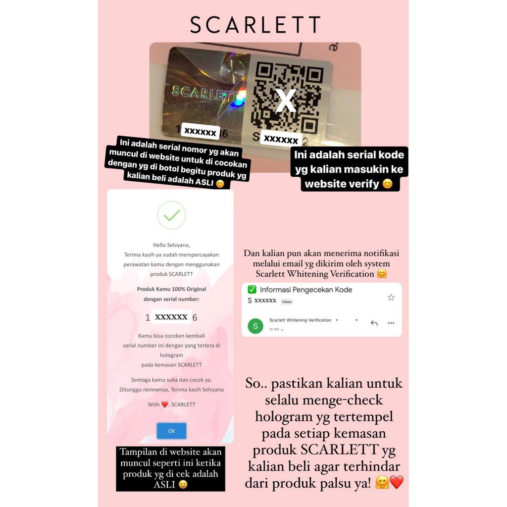 Scarlett Whitening Series tersedia dalam ready stock dan kami menjamin produk akan dikirim dalam keadaan baik. Untuk memastikan keamanan produk selama pengiriman, kami merekomendasikan Anda untuk: