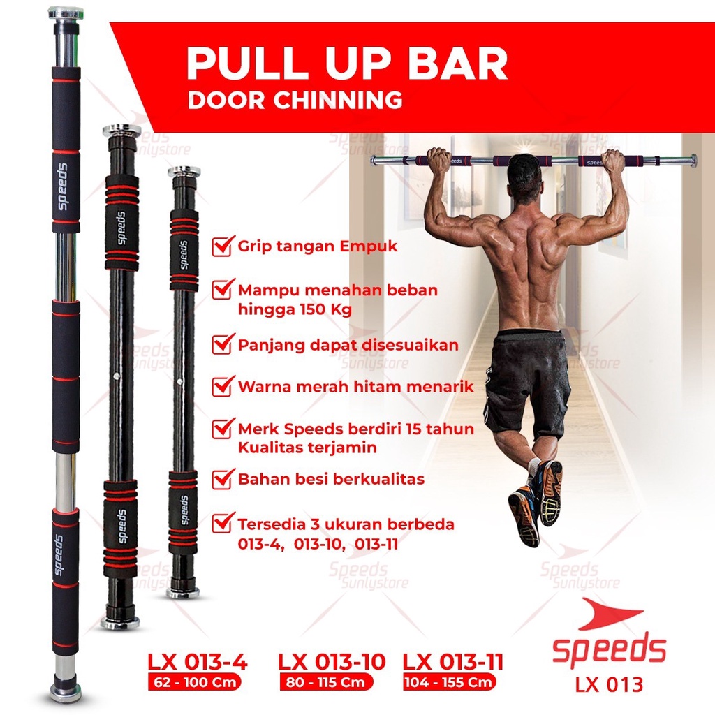 SPEEDS Pull Up Bar adalah alat fitness yang praktis dan efektif untuk membantu Anda membangun otot tubuh di rumah. Dengan desain yang mudah dipasang dan penggunaan yang fleksibel, alat ini sangat cocok untuk semua kalangan. Jangan lewatkan kesempatan untuk memiliki tubuh yang Anda impikan, segera dapatkan SPEEDS Pull Up Bar dan mulai latihan Anda hari ini!