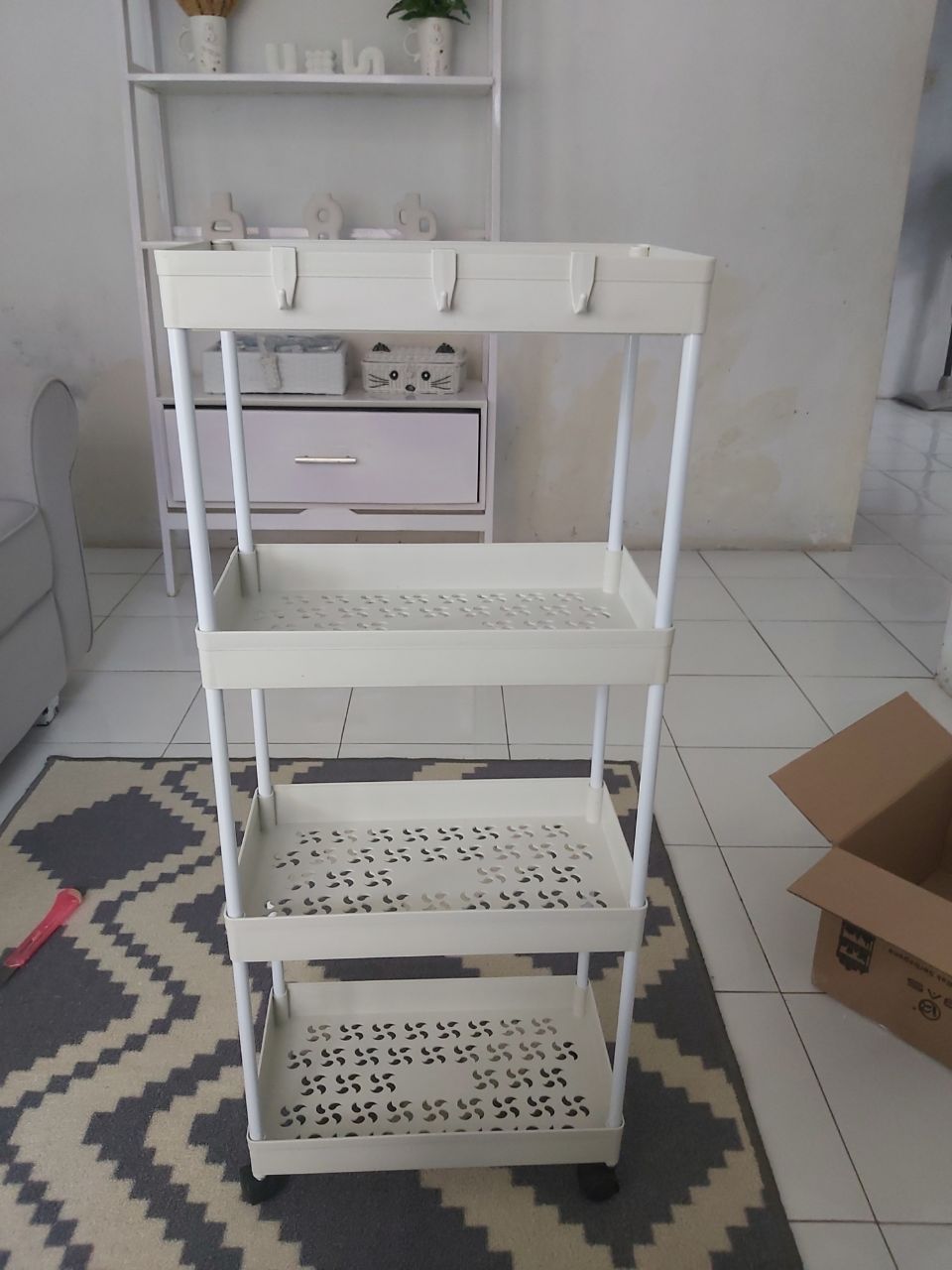 Square Rak Troli 4 Susun ini terbuat dari material plastik berkualitas tinggi yang ringan namun kuat. Dengan ukuran 35x20x87 cm setelah semua komponen terpasang, rak ini menawarkan 4 tingkat penyimpanan yang dapat digunakan di berbagai ruangan. Tersedia dalam dua warna elegan, yaitu hitam dan putih, rak ini dapat menyatu dengan berbagai gaya dekorasi interior.