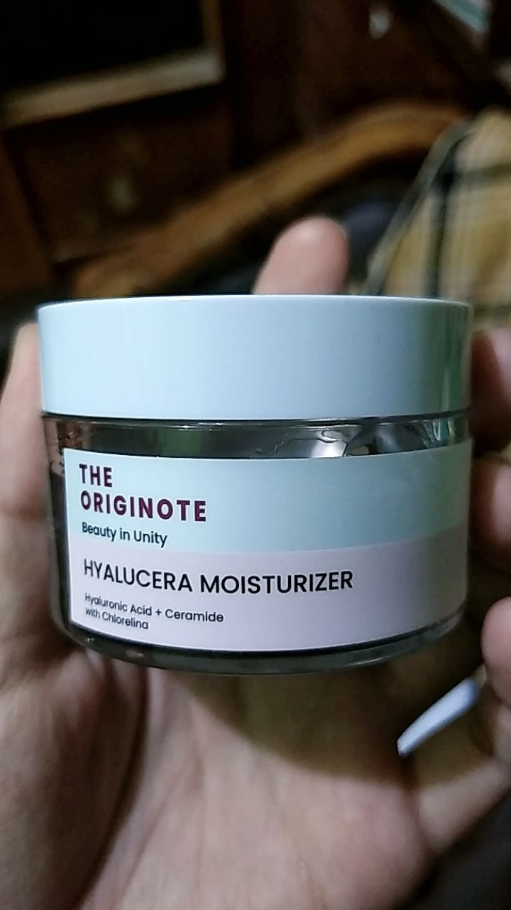 - Setelah serum meresap, aplikasikan The Originote Hyalucera Moisturizer untuk mengunci hidrasi.