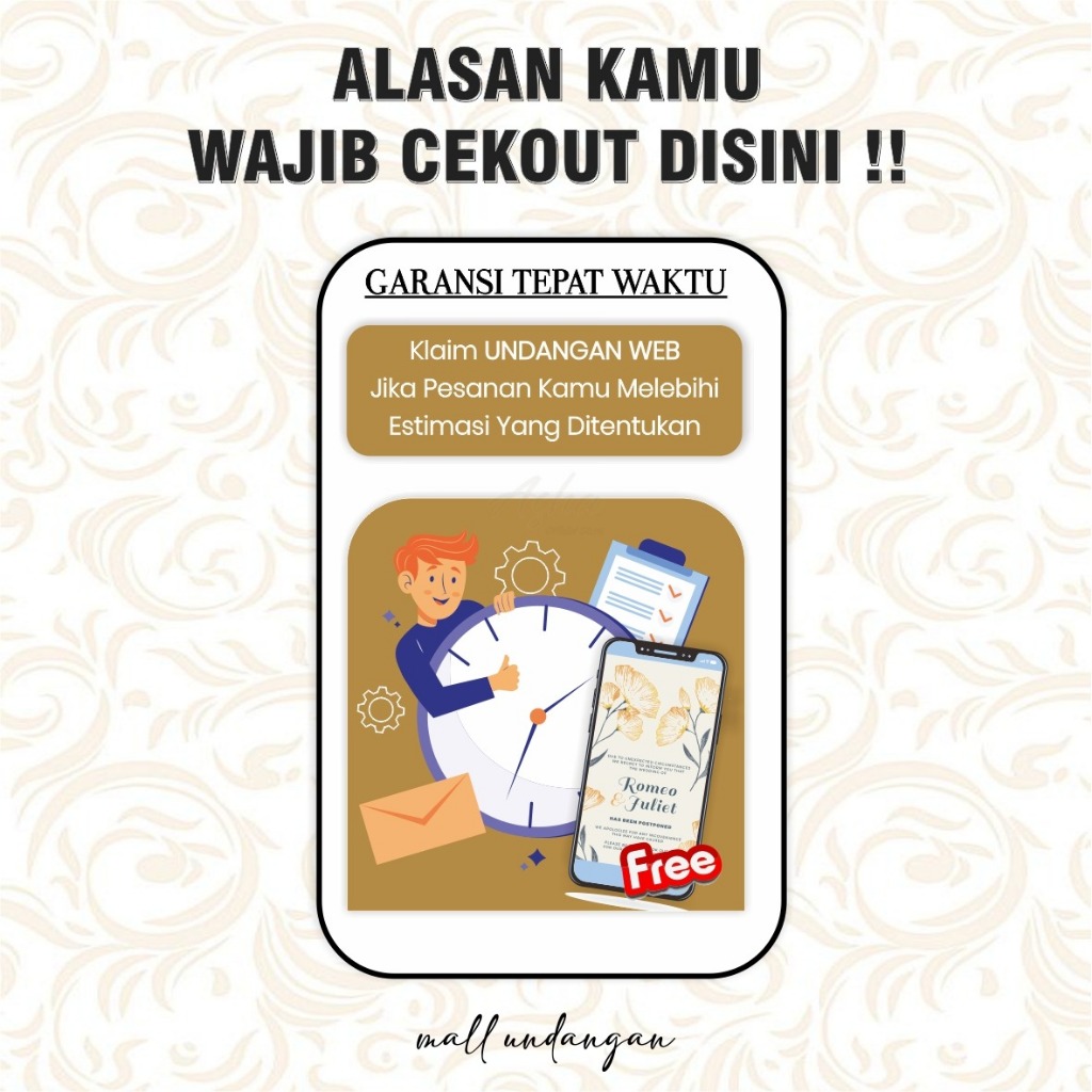 - Garansi Tepat Waktu: Dapatkan undangan website/video GRATIS jika pesanan Anda tidak dikirim sesuai estimasi waktu yang dijanjikan.