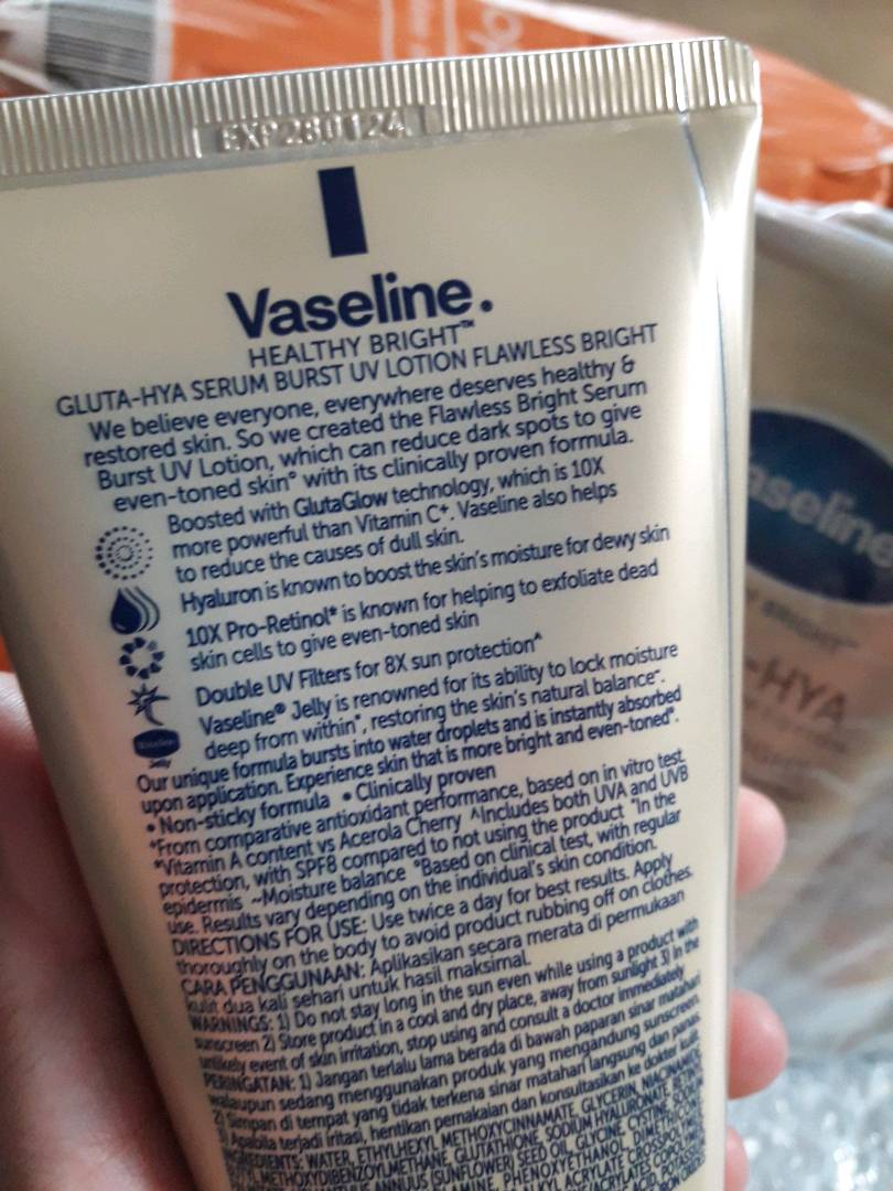VASELINE Gluta-Hya Body Serum Flawless Bright adalah pilihan tepat bagi Anda yang ingin mendapatkan kulit yang cerah, merata, dan terhidrasi. Dengan berbagai keunggulan dan teknologi mutakhir, produk ini telah terbukti efektif dalam mencerahkan kulit dan melindungi dari sinar UV. Jangan tunggu lagi, dapatkan kulit glowing impian Anda dengan VASELINE Gluta-Hya Body Serum!