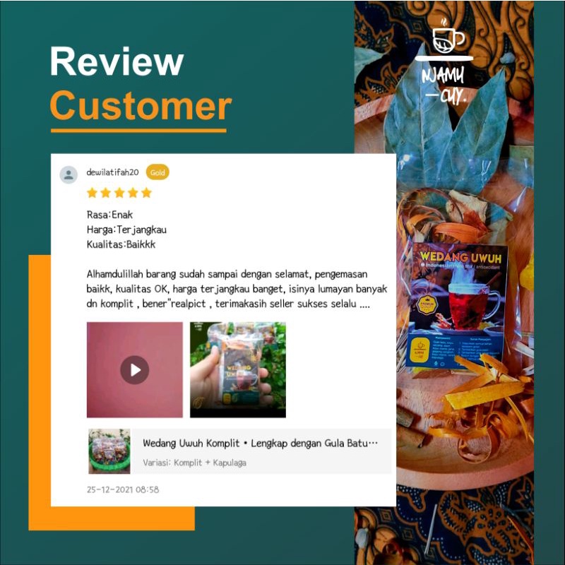 Selamat datang di dunia Wedang Uwuh Komplit! Jika Anda mencari minuman tradisional yang kaya akan rasa dan manfaat kesehatan, maka Anda berada di tempat yang tepat. Wedang Uwuh dari Njamu Cuy ini adalah pilihan sempurna untuk Anda yang ingin merasakan kehangatan dan kebaikan rempah-rempah lokal dalam setiap tegukan. Dengan kualitas premium dan racikan khas Jogja, minuman ini siap memanjakan lidah Anda dan memberikan manfaat bagi kesehatan.