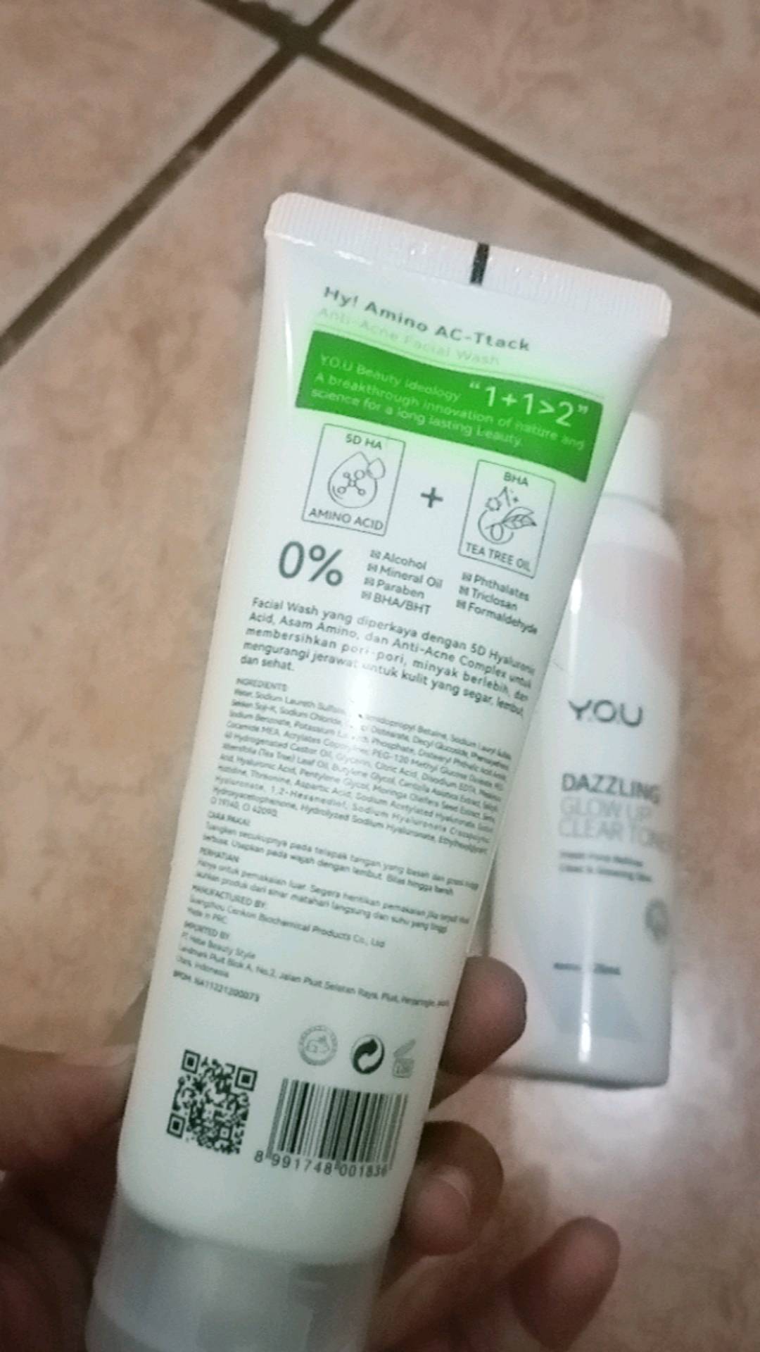 Efektivitas:belum terlihat Tekstur:oembut Kandungan:amino acid+tea tree oil Semoga cocok dan efektif untuk jerawat, baru pertama coba. Pertama buka agak kaget, kirain salah barang, ternyata dpt free toner dong😭😭 cuma bayar 30k dapet 2 produk, langsung jatuh cinta lah!!